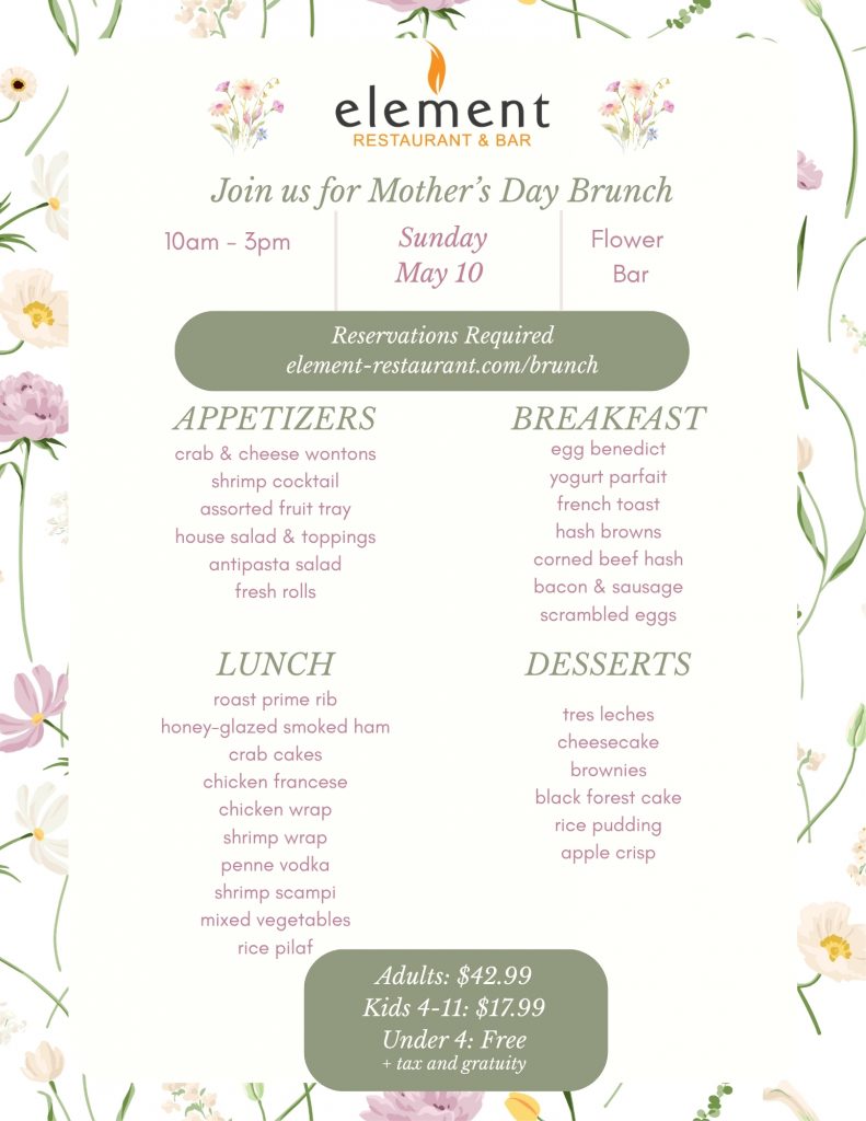 Tagged brunch, element, element restaurant, element restaurant & bar, manahawkin, mothers day, mothers day brunch, nj, restaurant, restaurant & bar