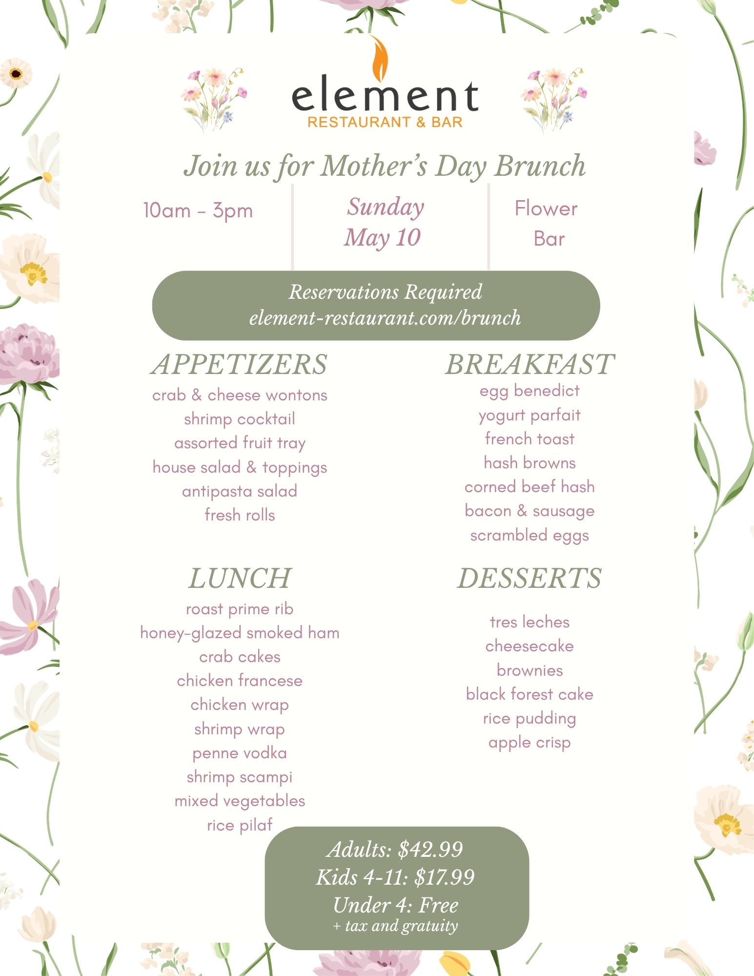 Serving Brunch 10am – 2pm on Mothers Day (May 11, 2025)